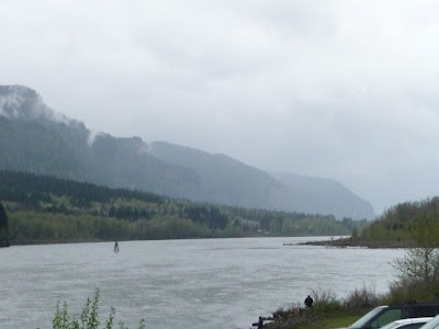To the right is the Oregon side, the whiter looking side is the Washington side.